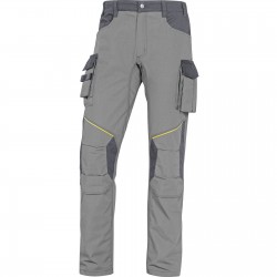 Spodnie. Gumka w talii po bokach. Kolana wstępnie uformowane. Wzmocnienie w kroku. 13 kieszeni, z czego 1 na miarkę.