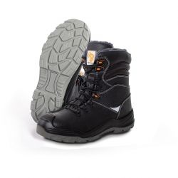 Buty ochronne, ocieplane kożuchem NARVIK S3. Wykonane z bydlęcej skóry dwoinowej, z wyściółką ocieplającą, metalowym podnoskiem ochronnym odpornym na uderzenia z energią 200 J i zgniecenia 15kN oraz stalową wkładką zabezpieczająca stopę przed przekłuciem o nacisku 1100N. Podeszwa z dwugęstościowego poliuretanu PU/PU, antyelektrostatyczna, antypoślizgowa i olejoodporna. Absorpcja energii w części piętowej. Elementy odblaskowe na bokach. Kategoria S3 SRC. Spełnia wymagania normy EN 20345